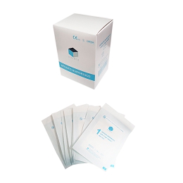 Caja con 50 unidades de apósitos quirúrgicos estériles para piercing. Medidas 5x7cm.