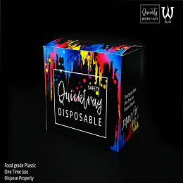 "La bandeja desechable Quicktray está diseñada para un solo uso y está hecha de plástico apto para uso alimentario."
