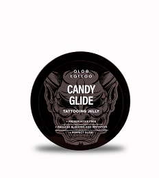 CANDY GLIDE de Aloe Tattoo es un gel (jelly) de uso profesional que sustituye a la vaselina blanca y está diseñado para tatuadores exigentes.