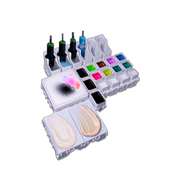 Optimiza tu espacio con esta base plástica estable y reversible, diseñada con cuatro cavidades de 10 ml y 14 ml para que puedas disponer tus tintas de manera práctica y segura.