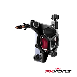 Máquina de tatuar GALAXIE III, de FK Irons, con una solida carcasa negra y configurada para un trazo convencional (Conventional Liner).