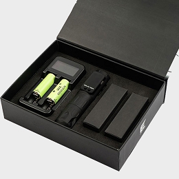 El paquete incluye: la máquina, un cargador, dos baterías, dos juntas tóricas y dos cables USB-C de diferentes longitudes.