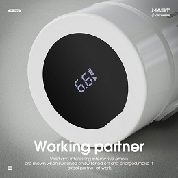 Compañero de trabajo atractivo : el chip inteligente de las baterías Mast le da vida a su trabajo con divertidos emojis para encender, apagar y cargar, lo que lo convierte en un compañero dinámico.